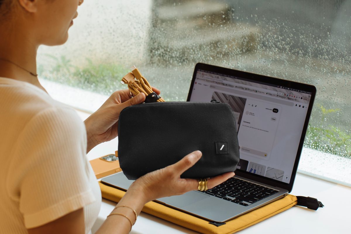 The Native Union W.F.A Tech Organizer keeps your cables, chargers, and accessories neatly stored with flexible interior pockets. Made from 100% recycled polyester with a water-repellent finish, it’s a lightweight, modern solution for daily commutes or travel—combining style, organization, and sustainability.