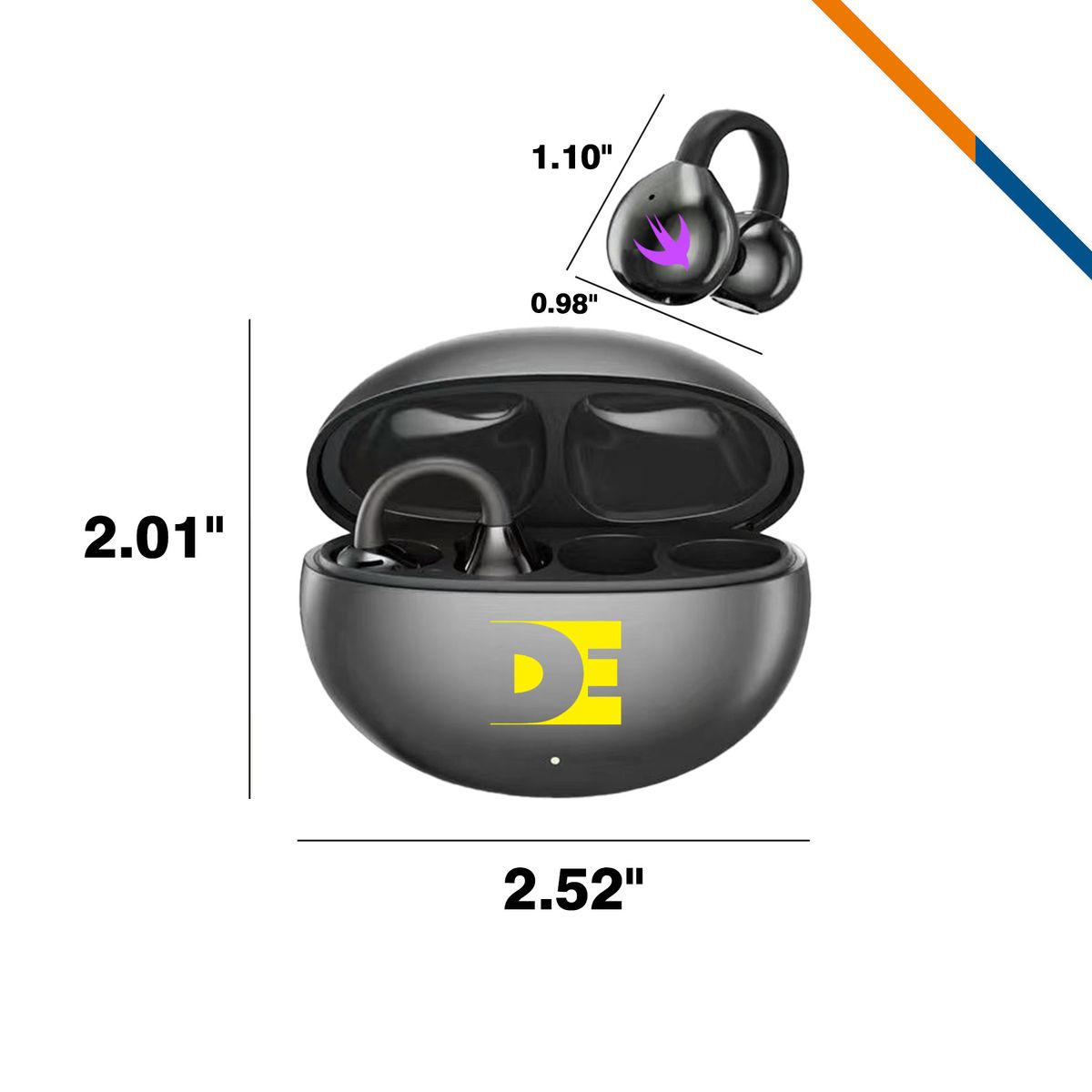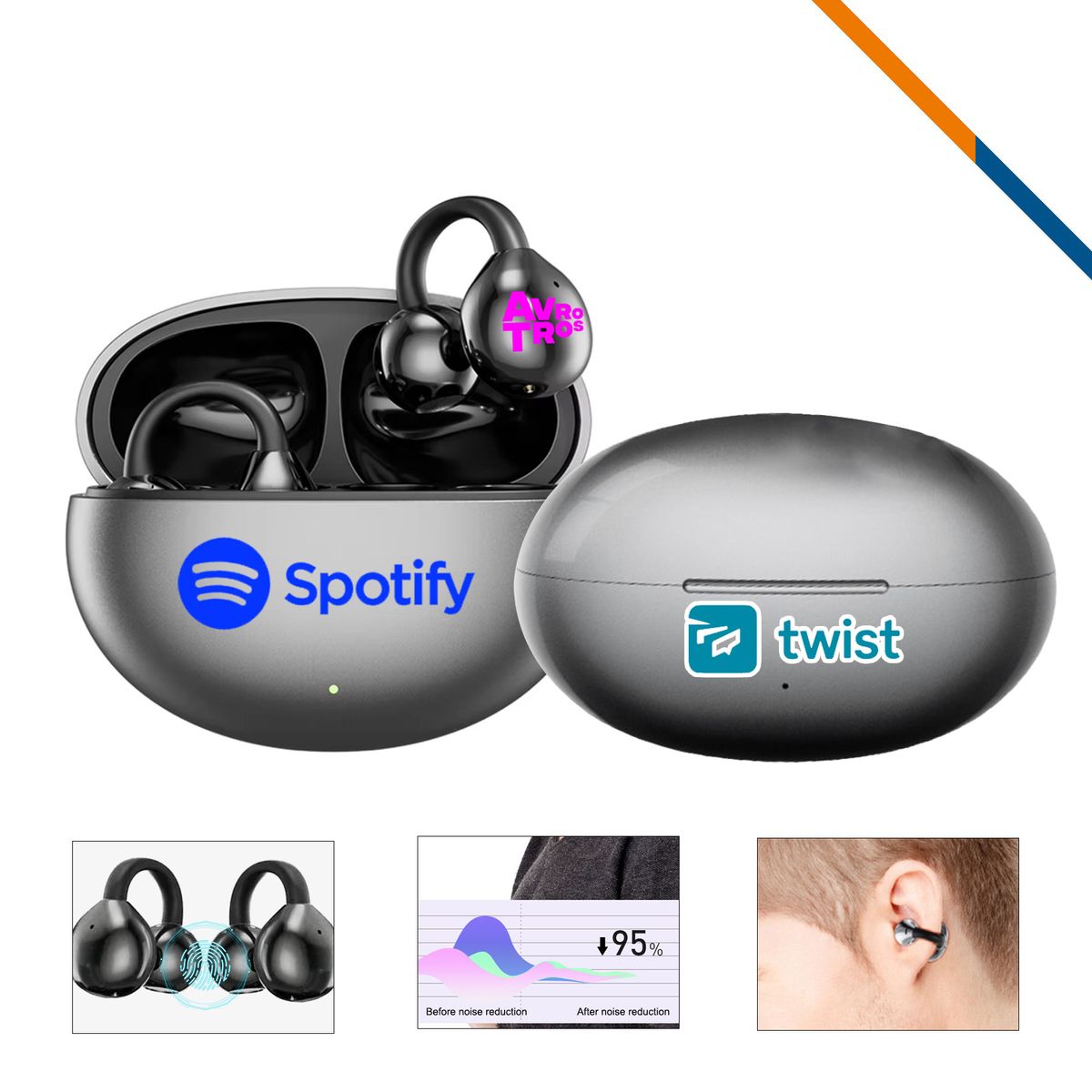 Cloin Bluetooth Earbuds are crafted from ABS plastic and feature an ear clip design for various ear shapes. Built in 250mAh rechargeable battery capacity of the charging case can charge the earbuds 4 times. Equipped with Bluetooth V5.4 for high-definition calls and operate within the 2.402-2.480GHz frequency range, supporting AAC/SBC protocols and having a 590 inch transmission range. The intelligent touch control enables power on/off, song switching, call management, and voice assistant activation. Dual-device connection allows easy switching among gaming, work, and calls. With an IPX4 waterproof rating, they are suitable for daily commuting, office use, or sports. Add your logo to make it a powerful promotional item.